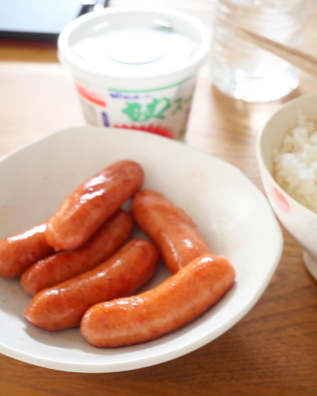 終始夫は笑いを堪えていたけど、ウインナーウインナーうるさい妻のために今朝出勤前にこっそりコンビニへ行き、ウインナー買って来てくれました。(まさかの!)
