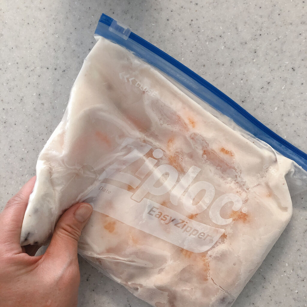 全部袋に入れたらしっかりと口を閉じて平らに。この状態で冷凍庫で凍らせます。
