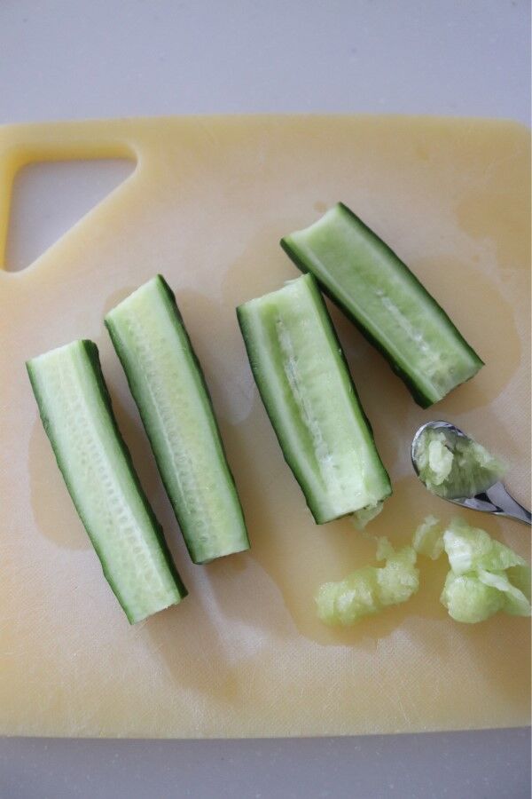 漬けてから食べるまで時間がある場合は、中の種部分の身を軽く取り除くと水っぽくなりません。