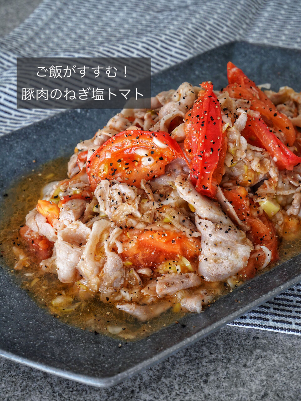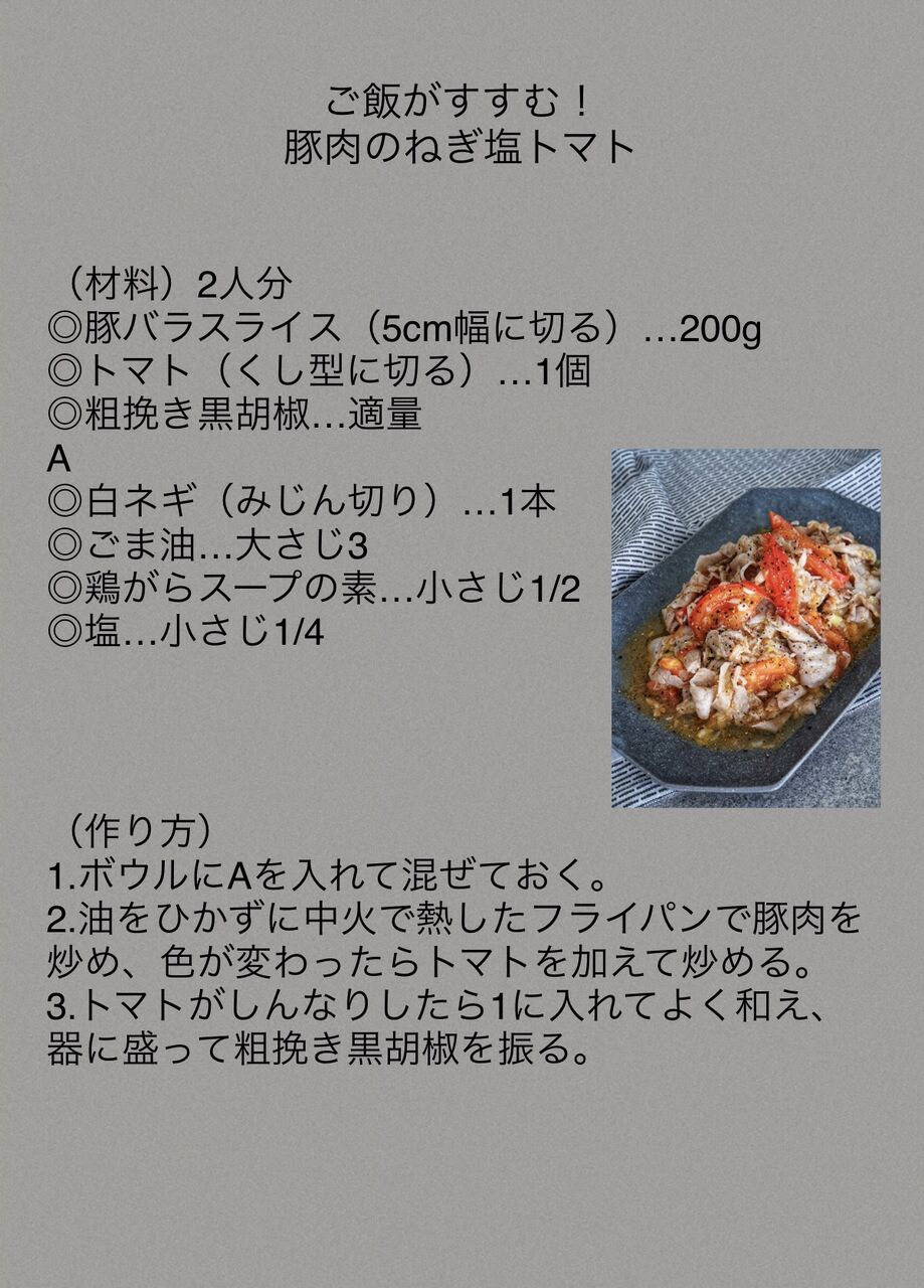 炒めて和えるだけでめっちゃ美味しい、トマト入のねぎ塩。