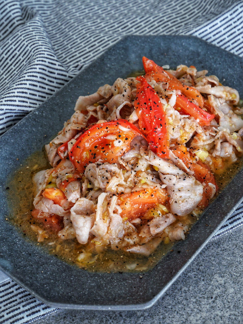 トマトの水分が出ますが、そのタレも美味しいのでご飯にかけて丼にしても。