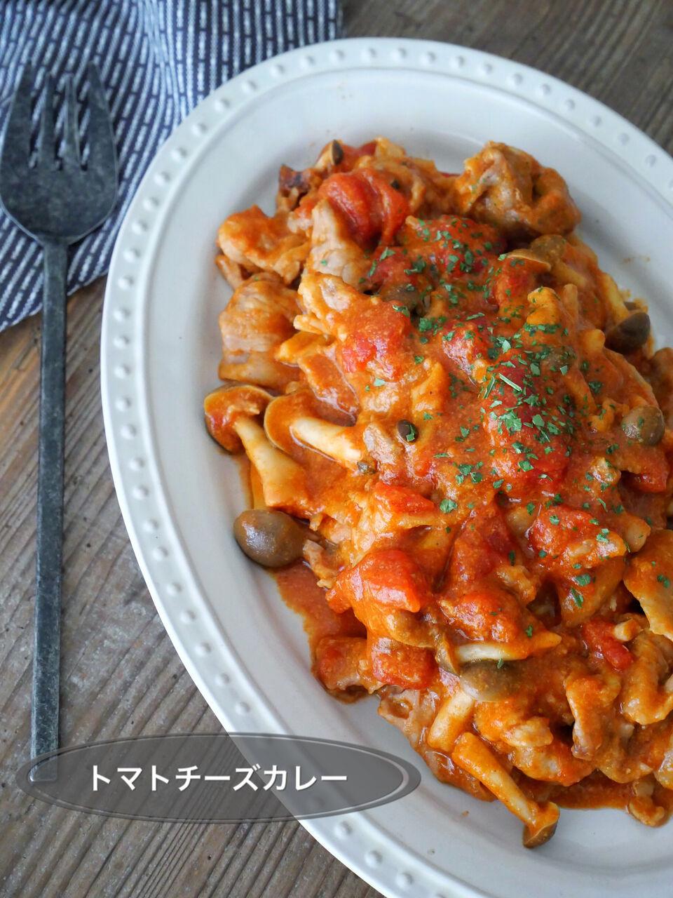 カレーと言ってもカレールーも水も使っていないので、カレー風味のトマトチーズなんですが
