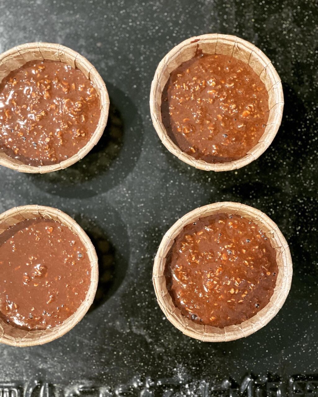 8分目まで入れたマフィン型4個分なら、レシピ通りの焼き時間で。