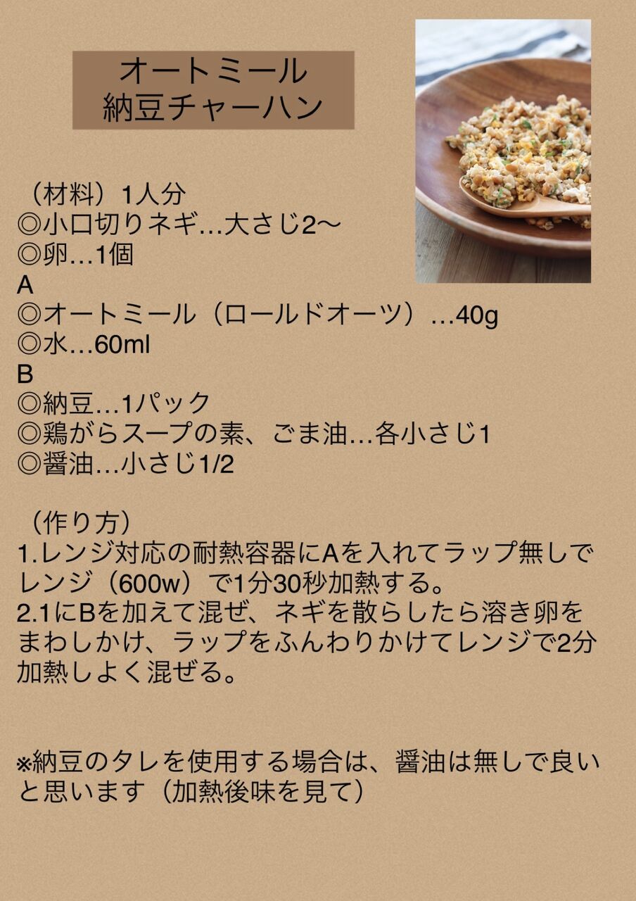 材料はオートミール、納豆、卵、ネギだけなので、何もない時におすすめ。