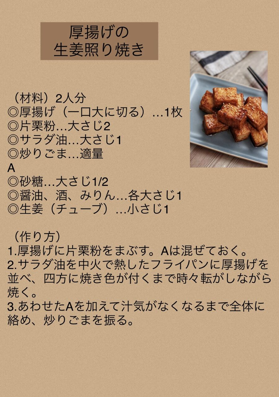 【厚揚げの生姜照り焼き】