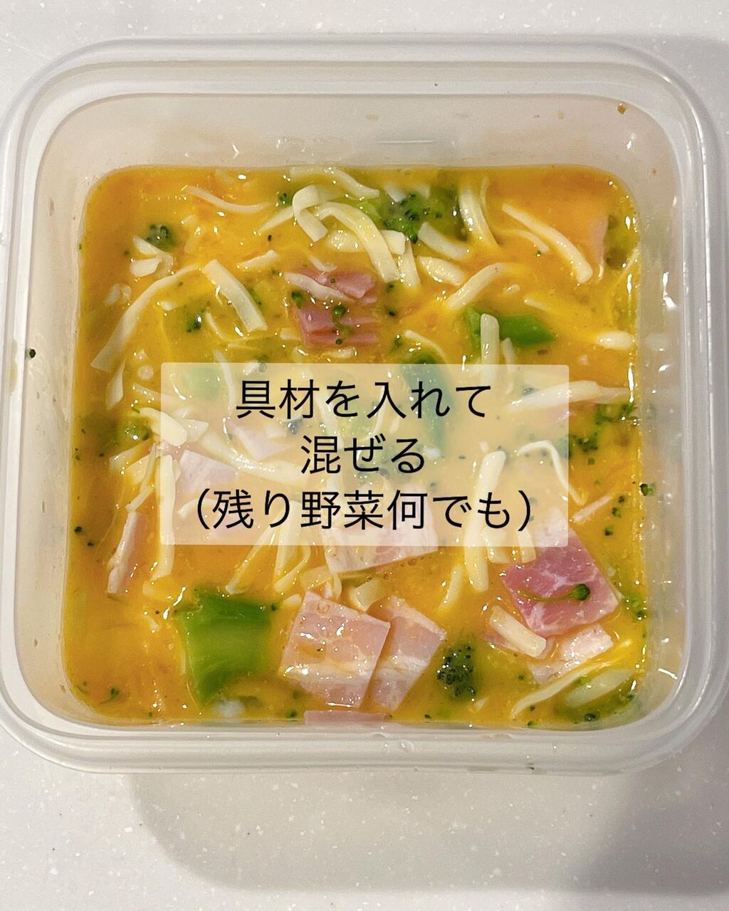 1.レンジ対応の耐熱容器にBを入れてよく混ぜ、