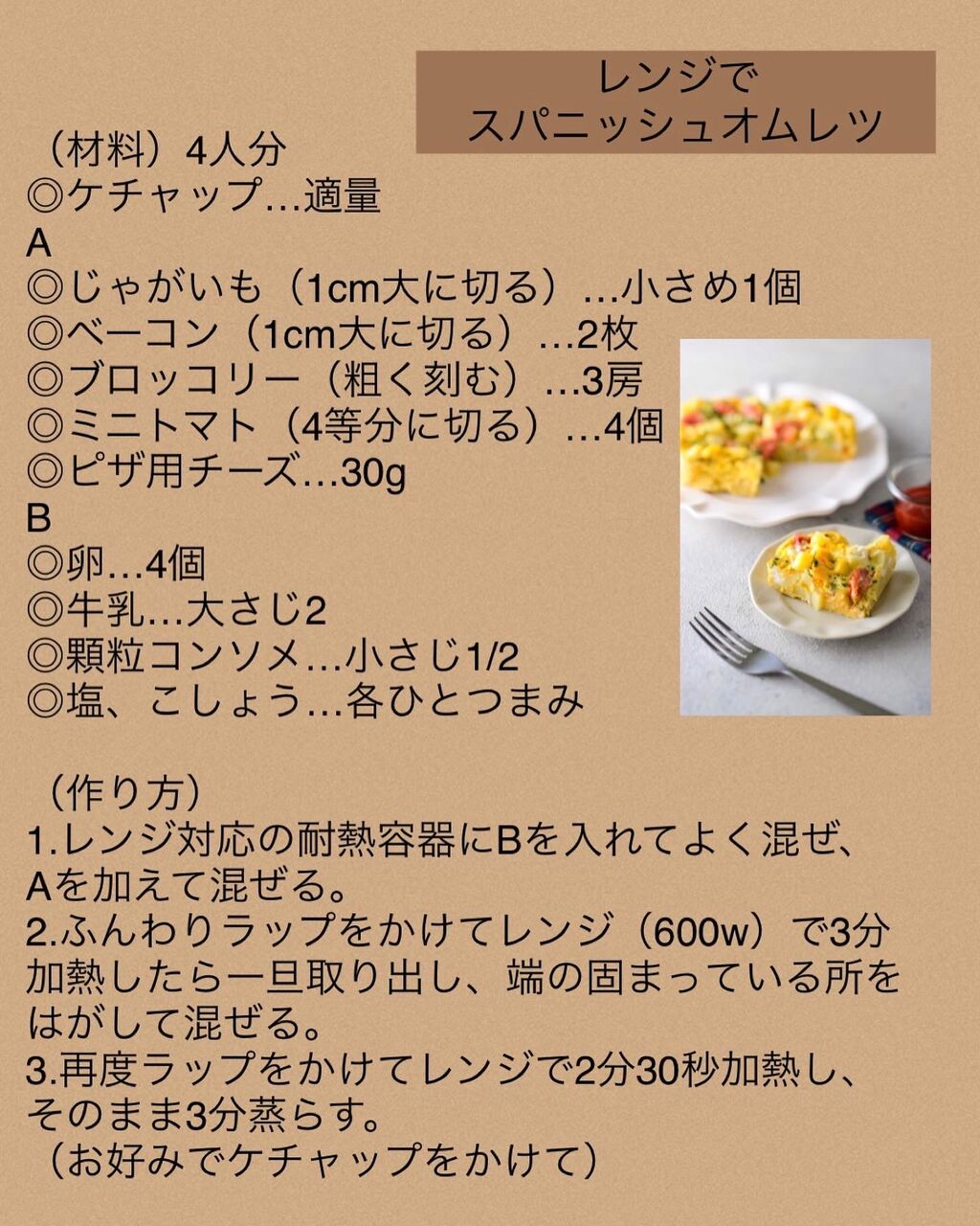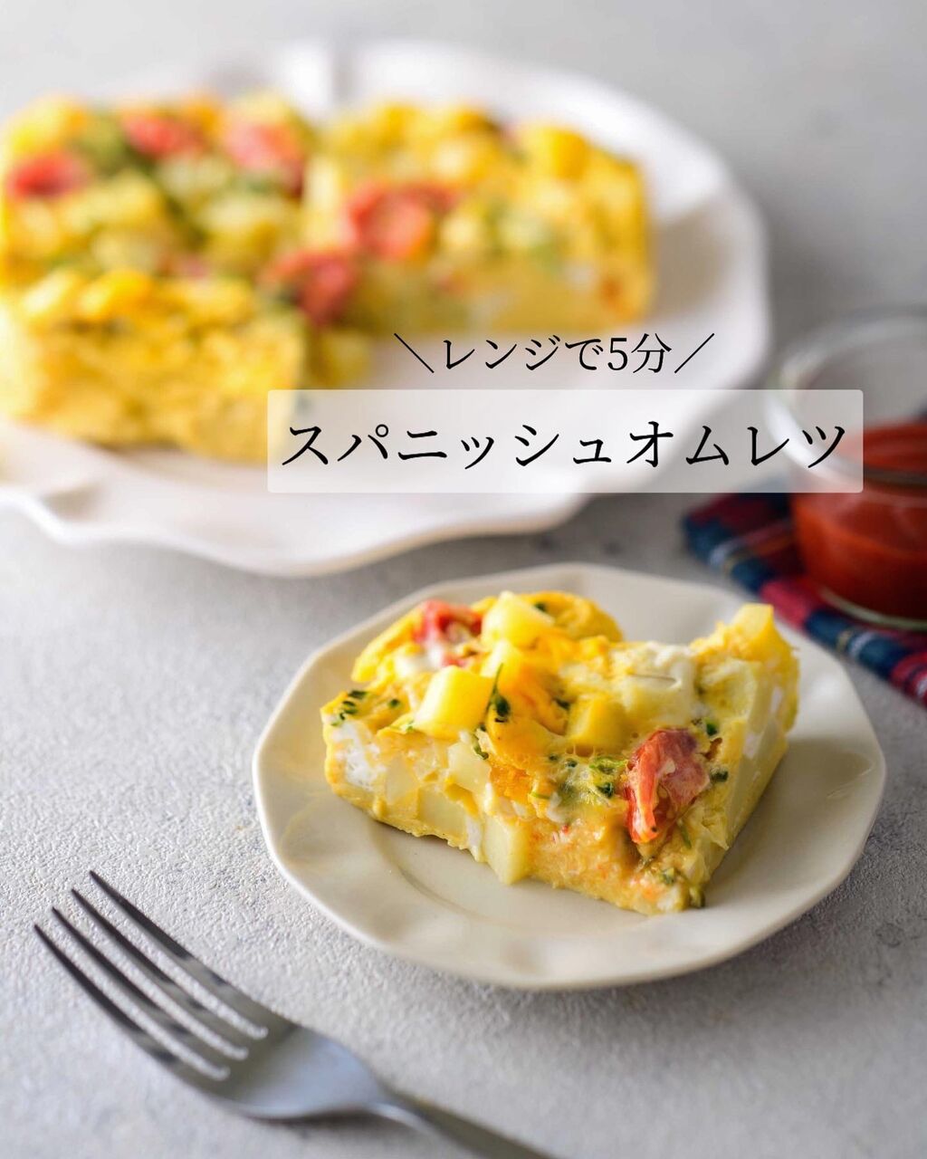 レンチンのスパニッシュオムレツを載せてるんだけど、