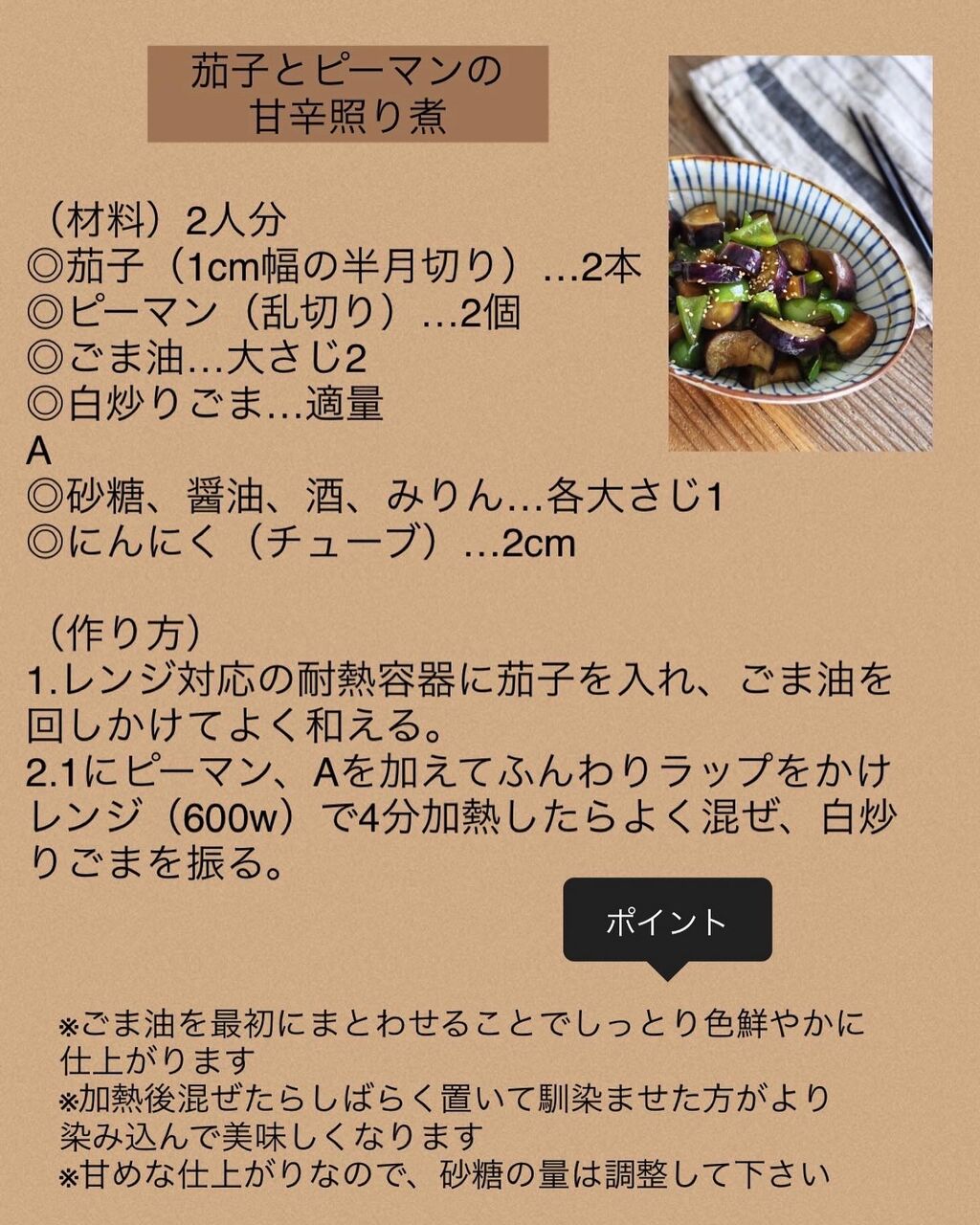 【茄子とピーマンの甘辛照り煮】