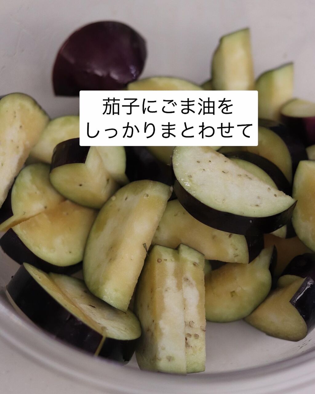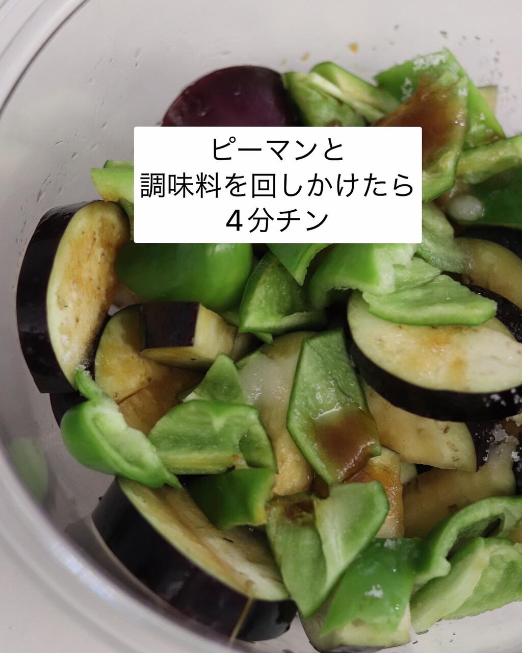 1.レンジ対応の耐熱容器に茄子を入れ、