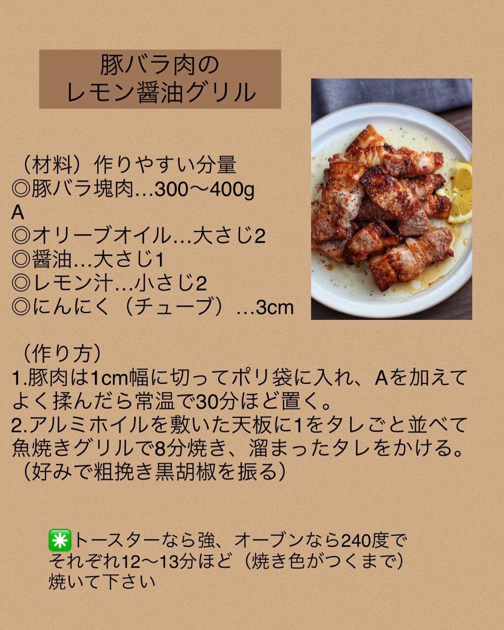 【豚バラ肉のレモン醤油グリル】