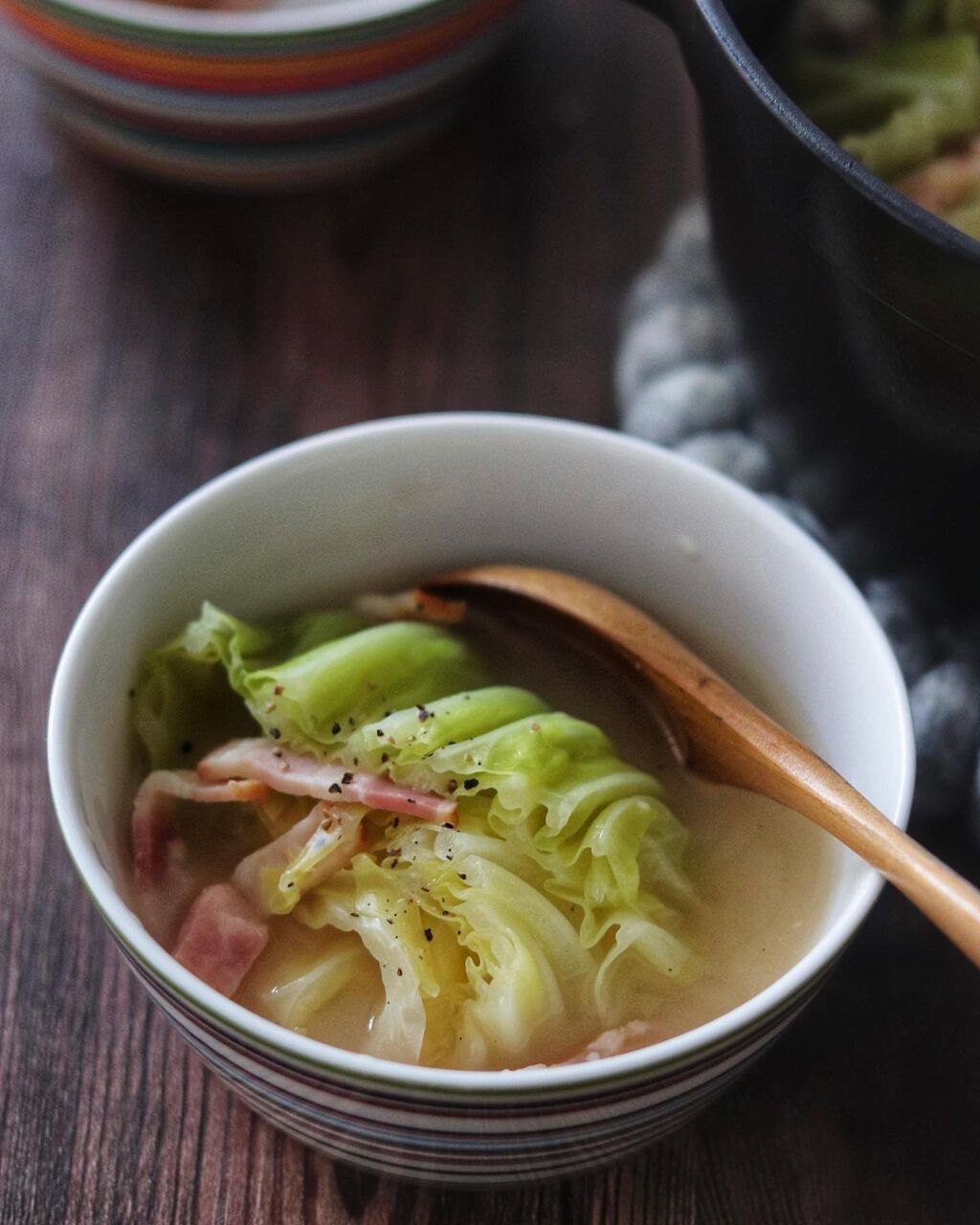 キャベツの甘み、コンソメ、ベーコンの塩気、チーズのコクでごくごく飲めてお腹いっぱい。