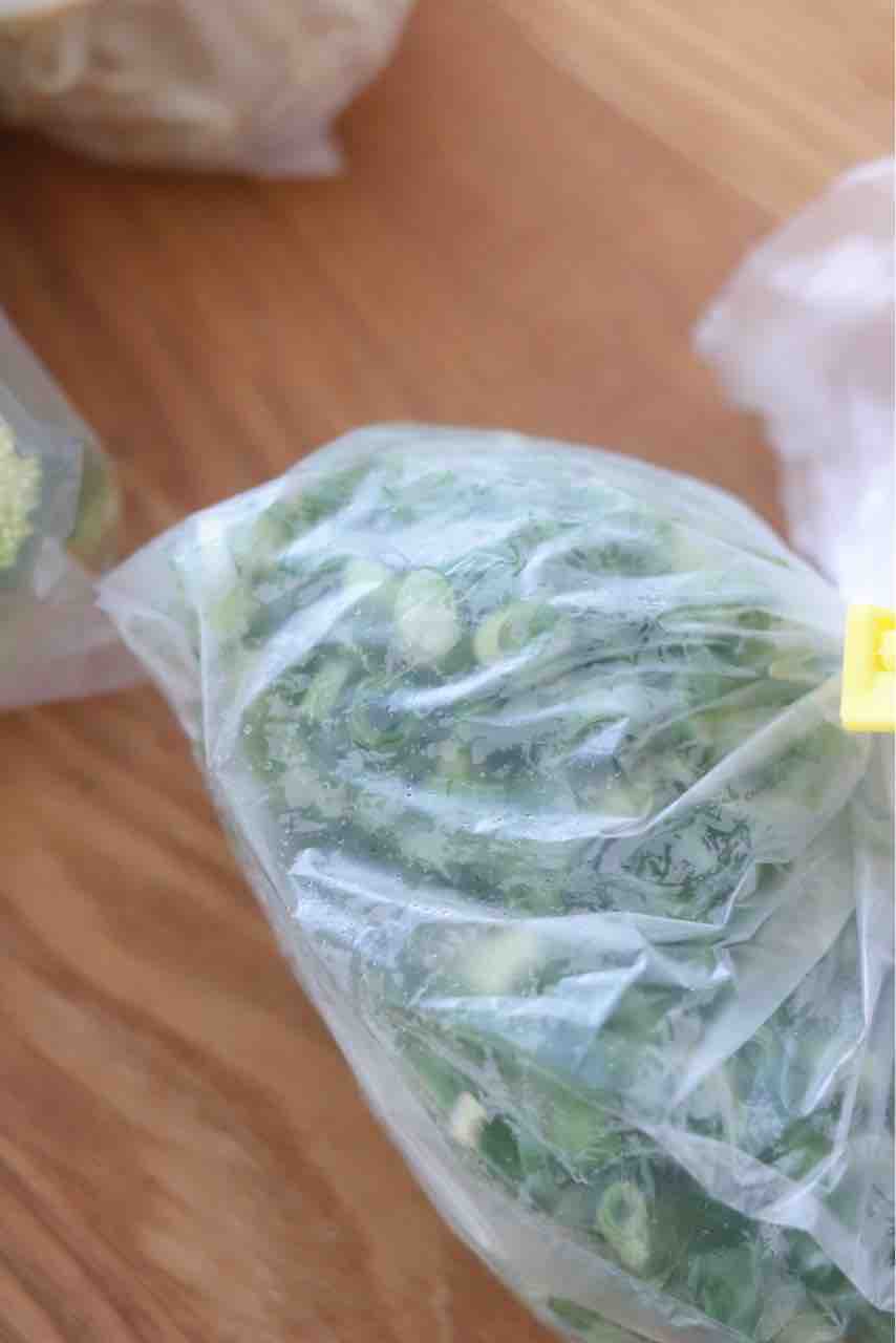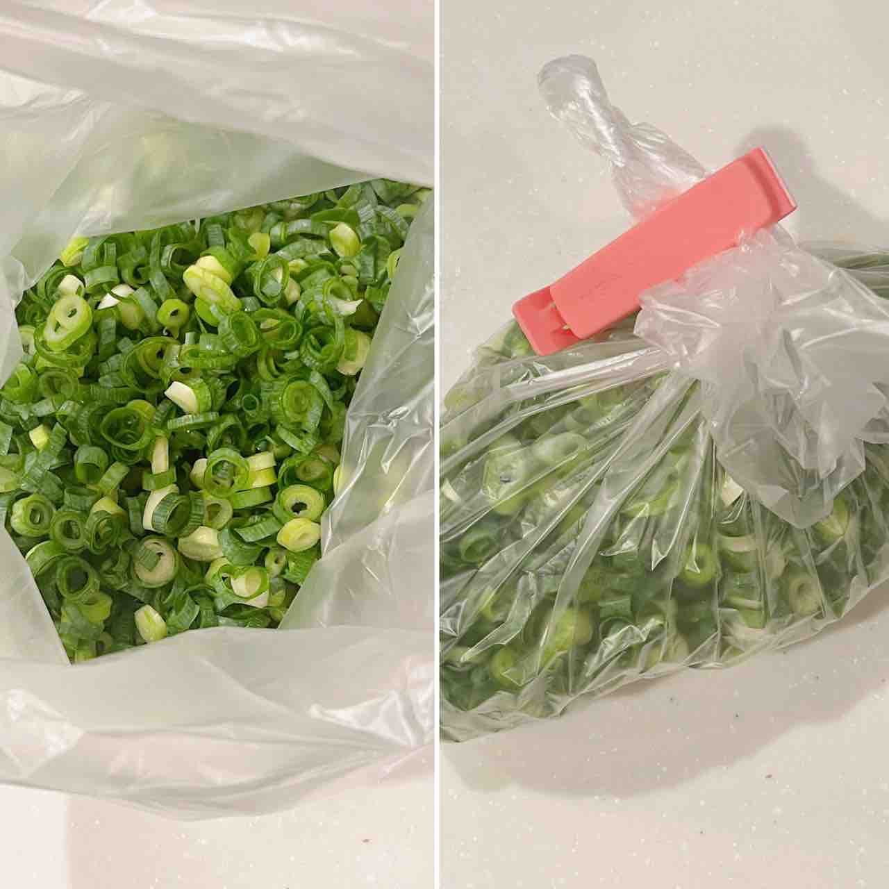 さらに、小口切りネギなんかも冷凍すると全部がくっついたりベチャッとなるけど、これもチーズと同じようにして冷凍。