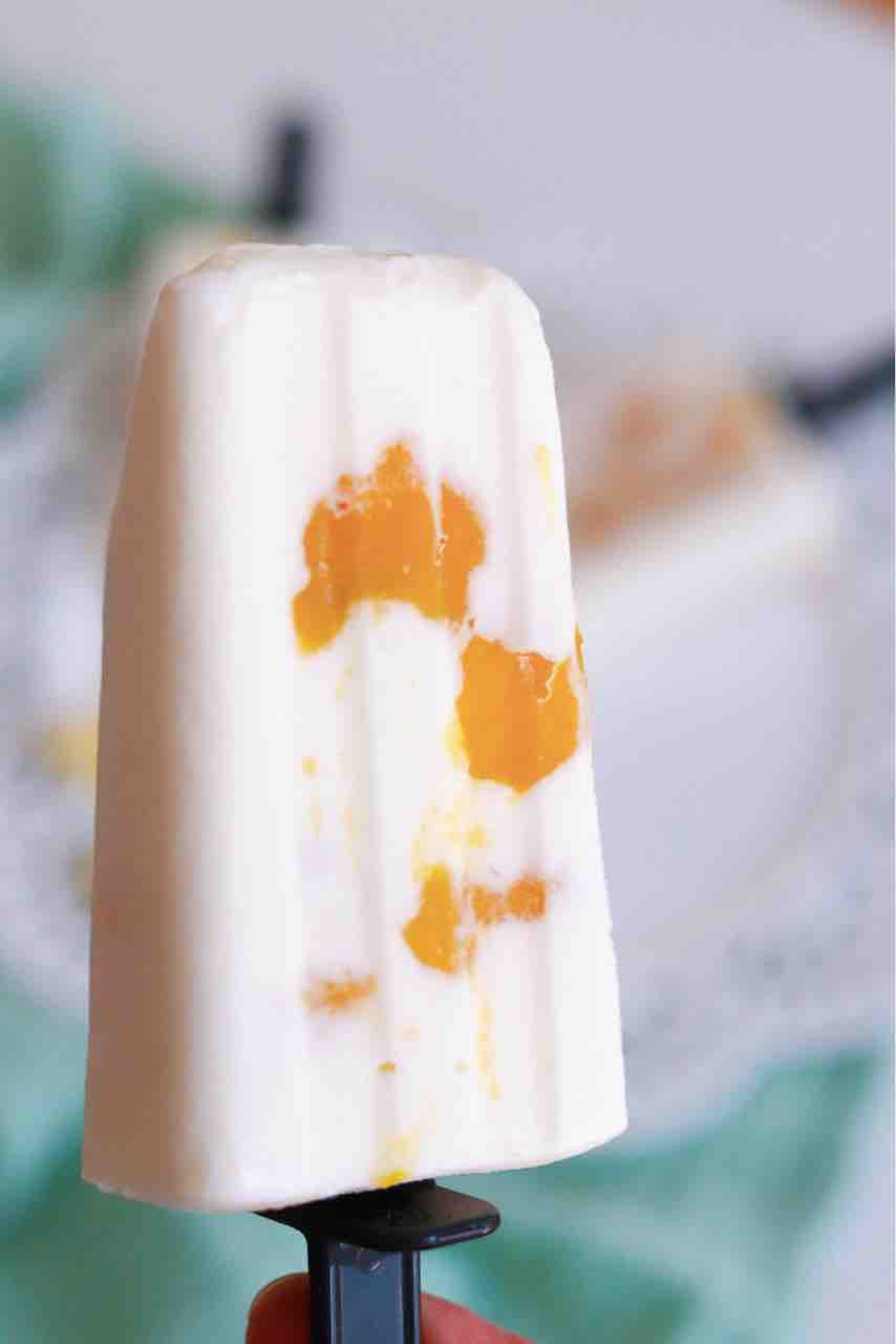 流し入れる時に、塩レモンアイスとマンゴージャムを交互に入れて凍らせただけです。