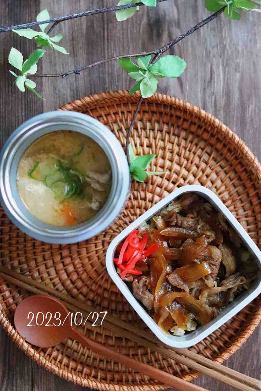 昨日の晩ご飯の豚汁と、牛丼なんだけど