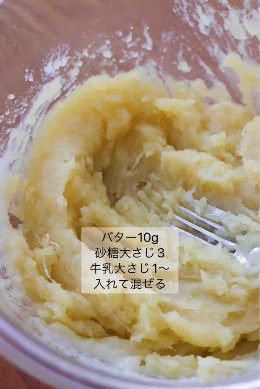 水分の少ない焼き芋の場合は牛乳でしっとり感を調整してね。