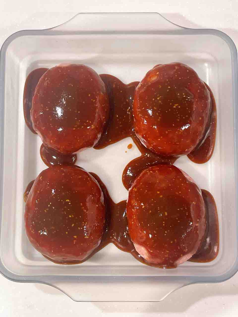 3.一旦取り出して裏返し、下に溜まったソースを上にかけて再度ラップをかけて3分加熱する。