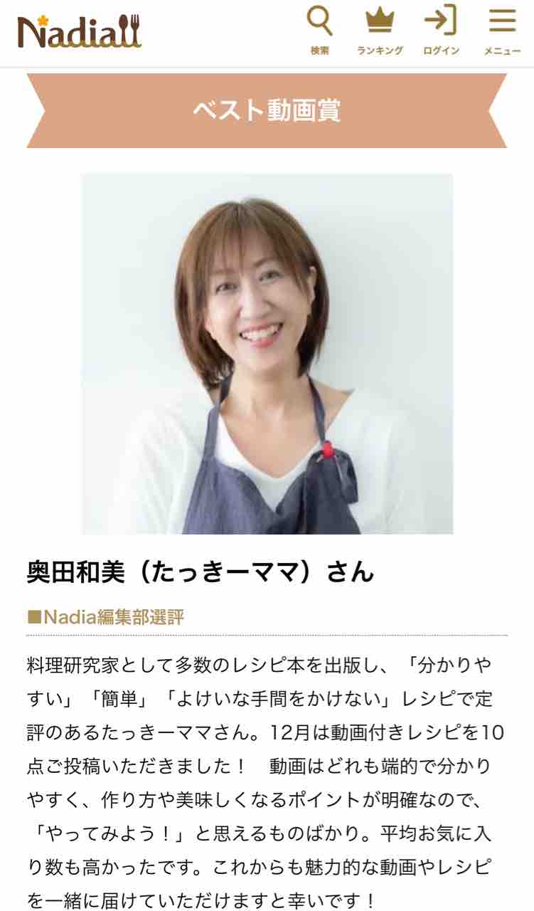 そしてもう1つ、料理サイト「Nadia」の「Nadia Monthly MVP」で「ベスト動画賞」を頂きました。