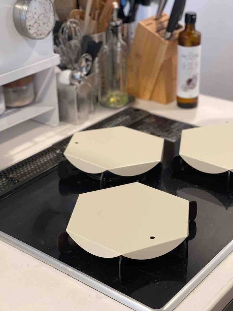 最初使っていたコンロのカバーは、コンロ全体を覆う大きな板状のものを使っていたんだけど、コンロを使うたびに板をどけてっていう作業が地味にしんどいかった。