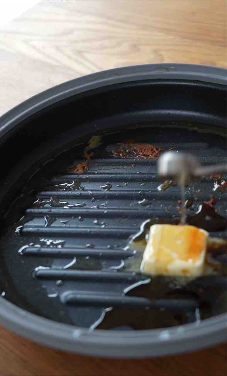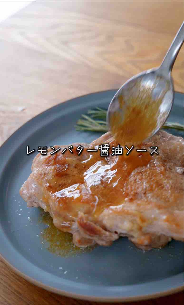 せっかく肉汁が溜まっているので、そこにバター、醤油、レモン汁を加えて30秒レンチン。