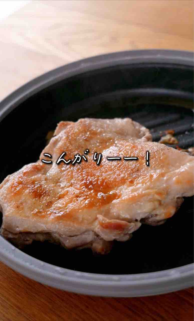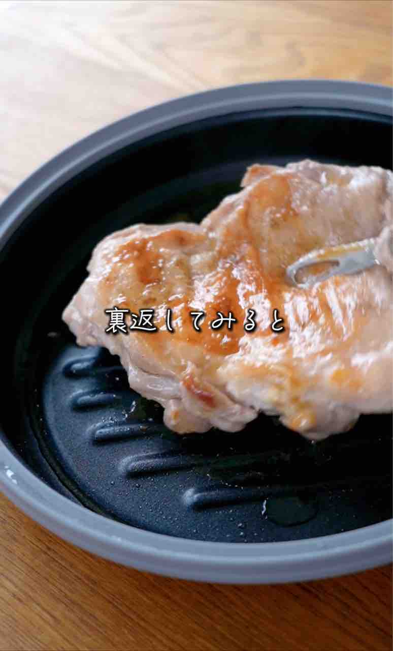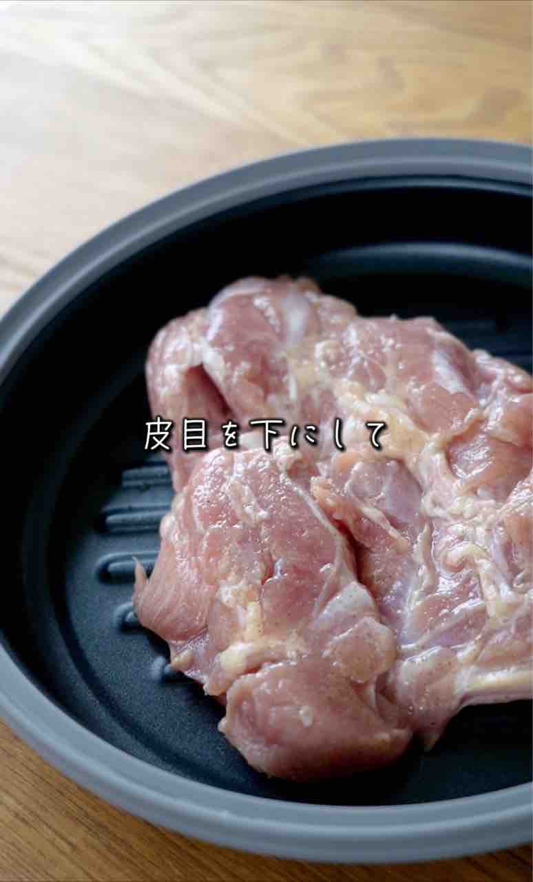 鶏もも肉の場合も同じく皮目を下にして蓋をしてチン。