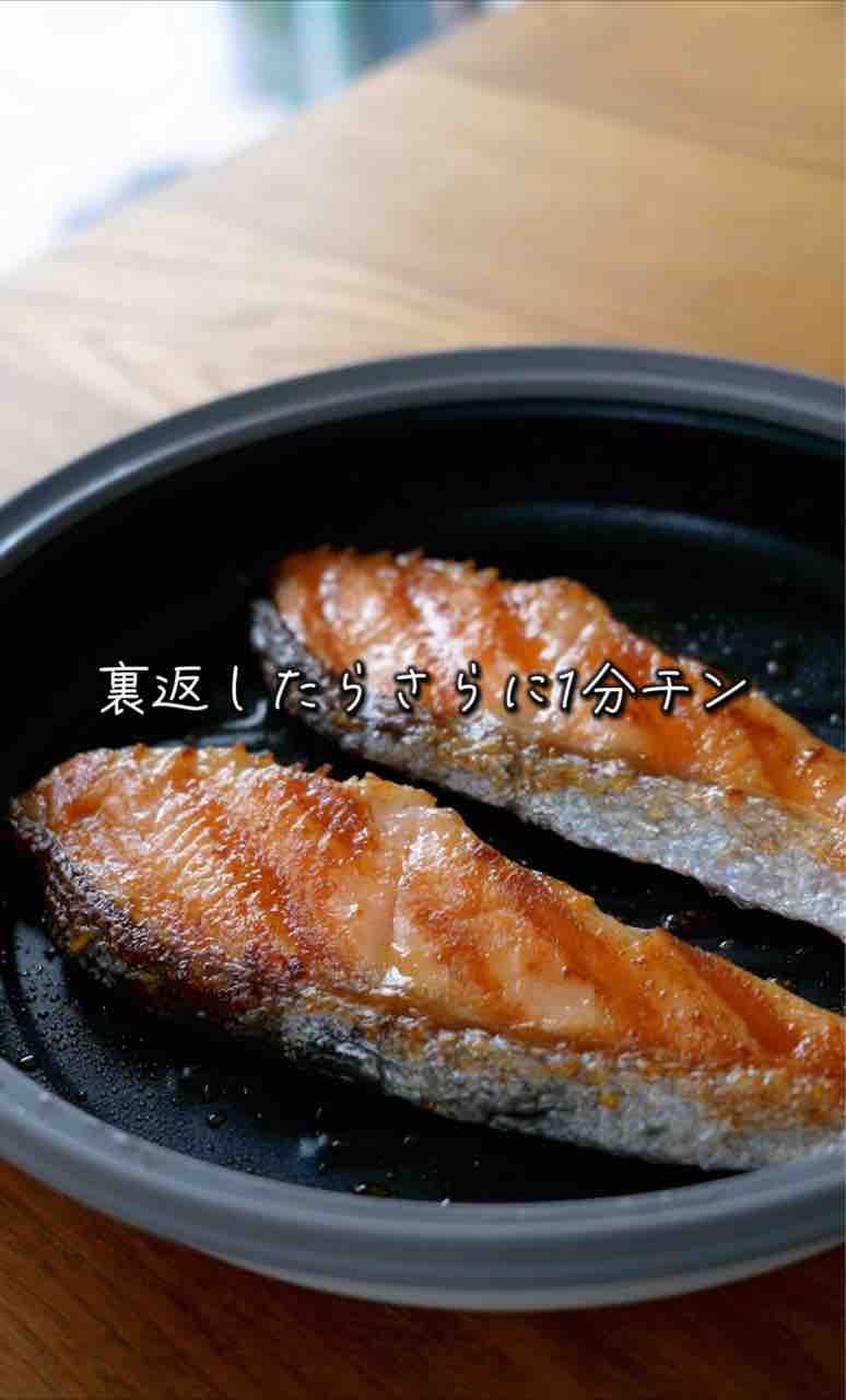 切り身魚は、1切れだけなら6分チンだけで裏返しは不要でした。