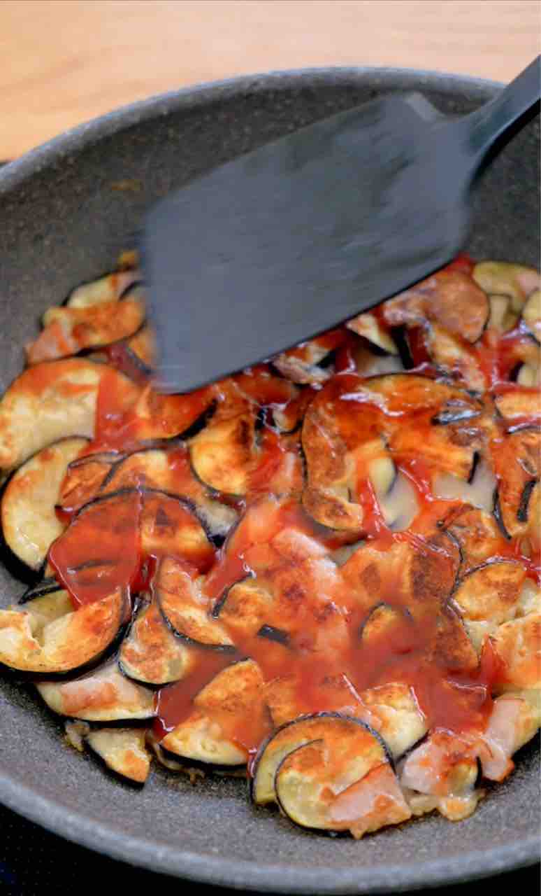茄子を使う場合はなるべく薄く切って。