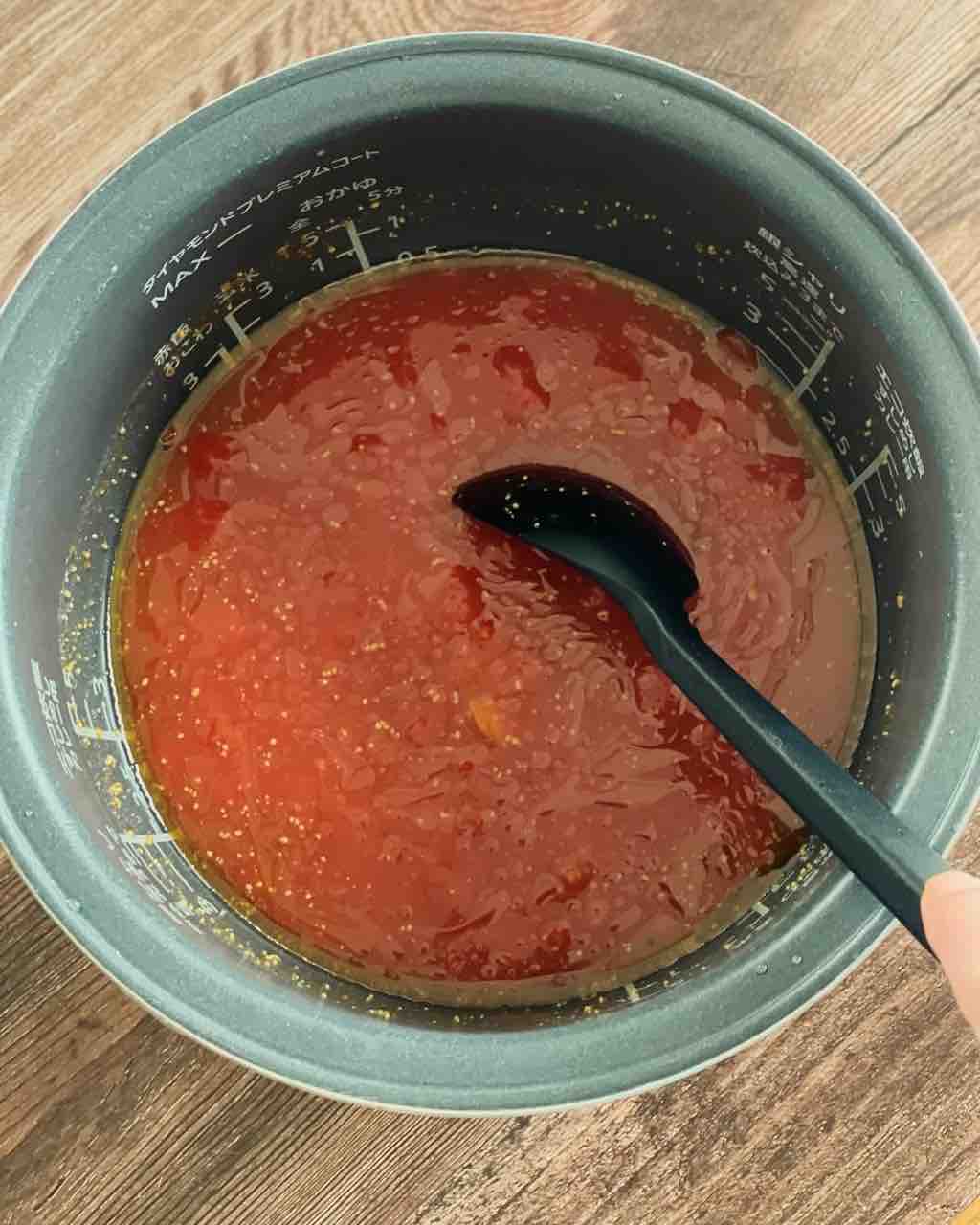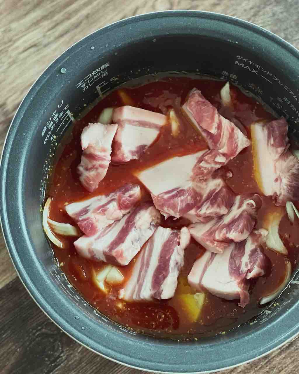 炊飯後、混ぜてから保温しておくとさらに豚バラとろとろ、じゃがいもはホクホク!