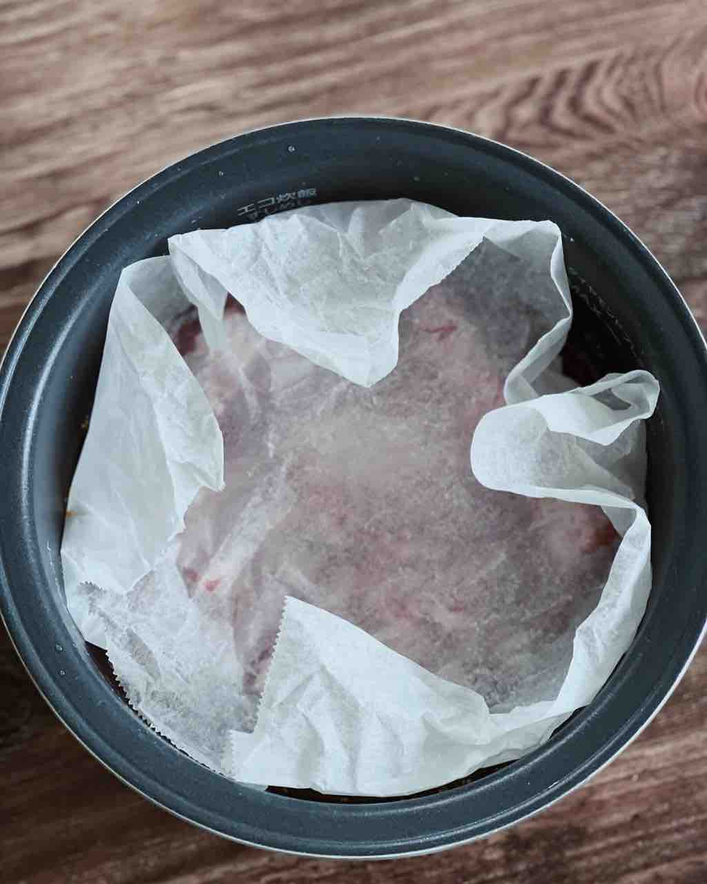 2.炊飯釜にAを入れて混ぜ、1を乗せたらクッキングシートをかぶせて普通に炊飯する。