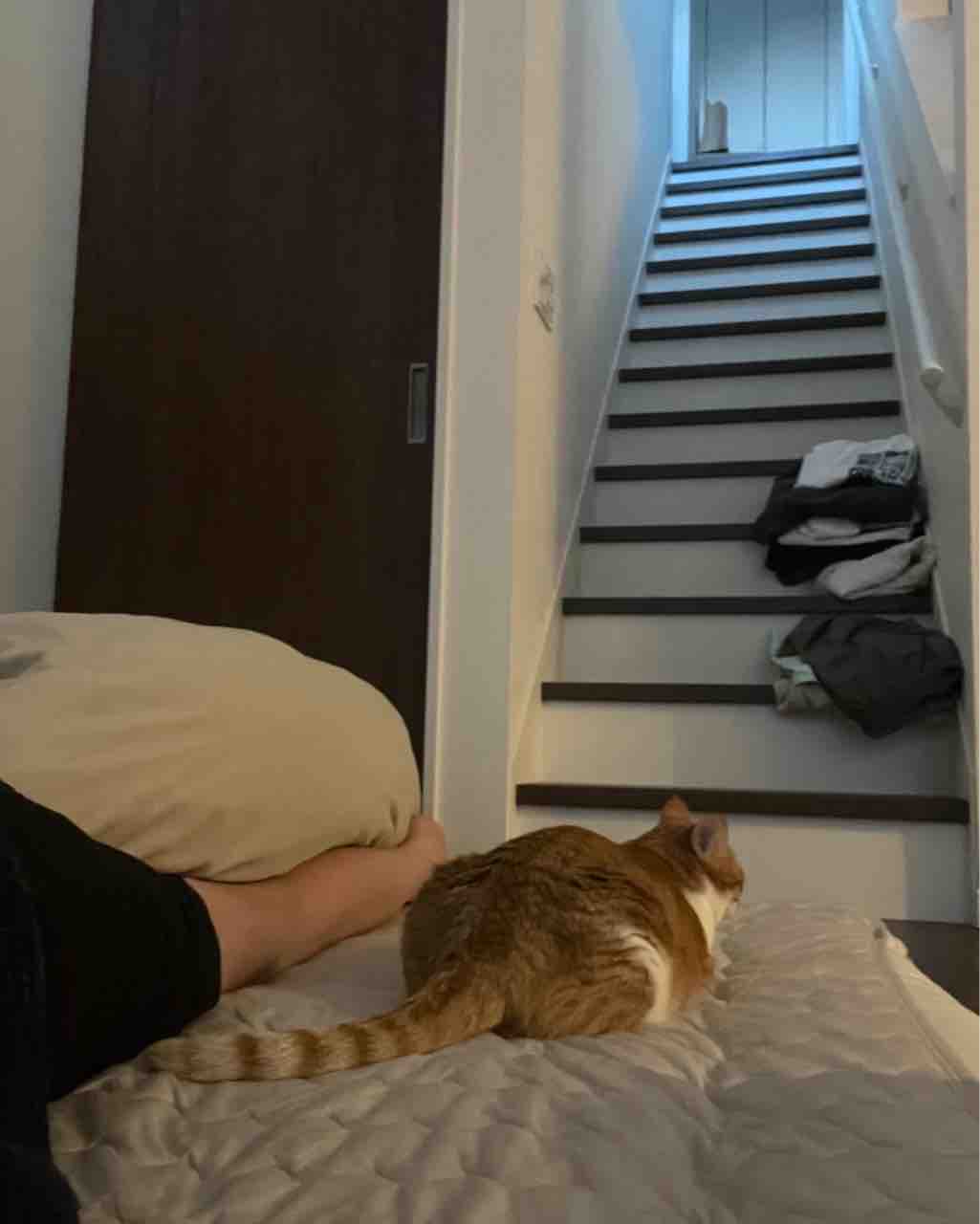 寝室にずっといると猫たちが寂しがるのでリビングに布団を敷いて寝てたんだけど、