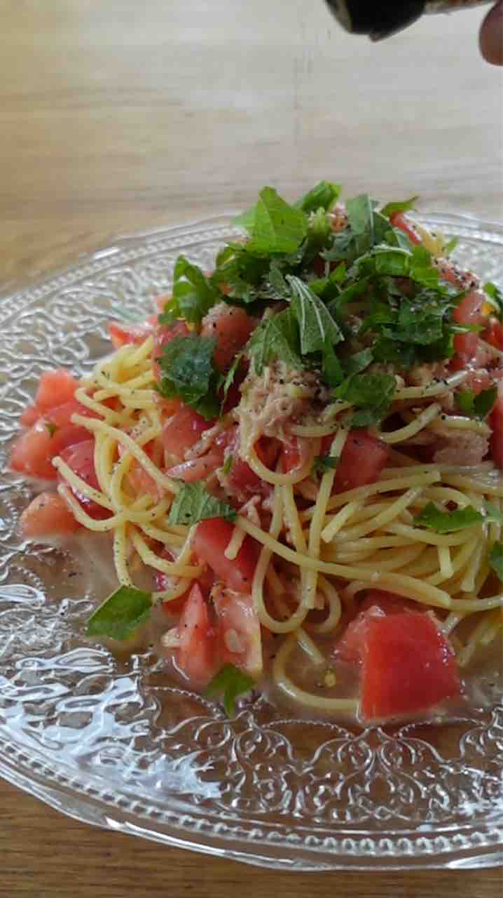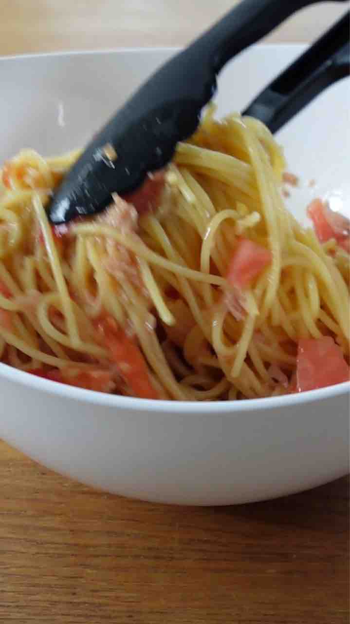 ということで、面倒くさくなく作れる、食欲がなくても食べられるレンチンで作る冷製パスタ。