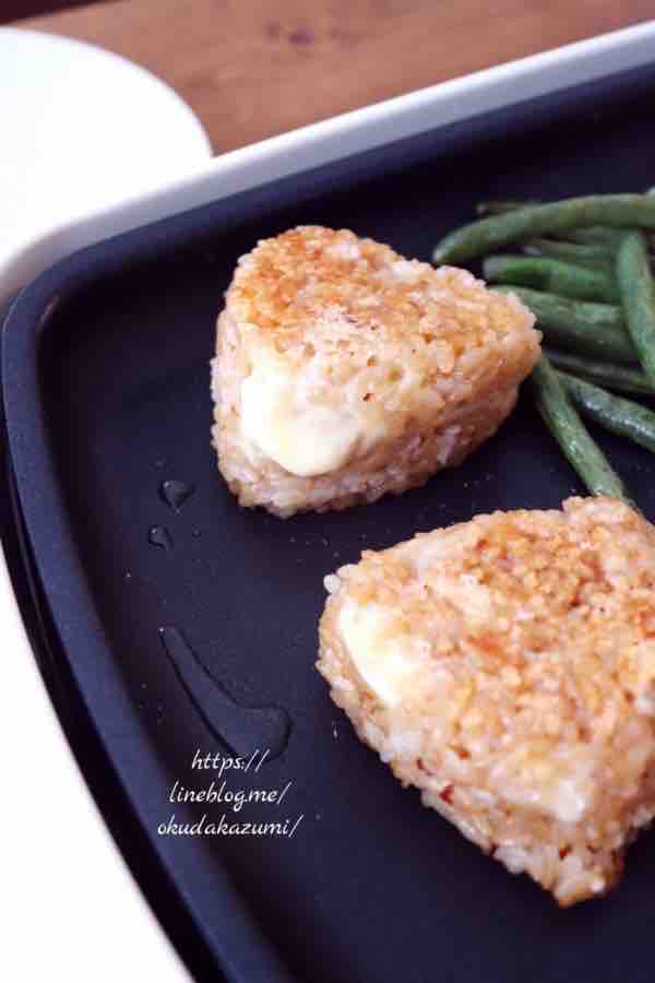 チーズを混ぜた醤油のおにぎりを焼くとチーズ溶けてめっちゃ美味しい。