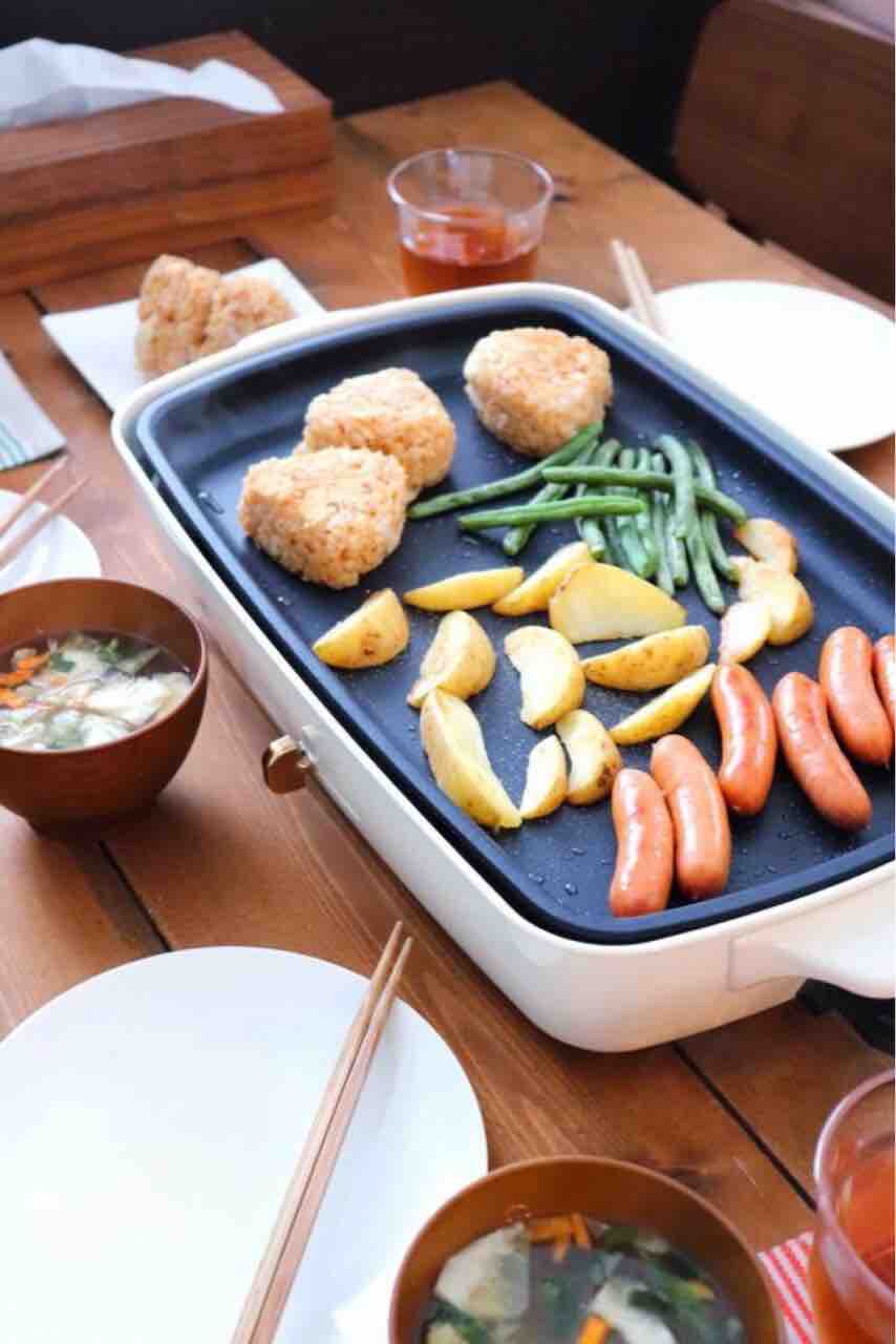 ホットプレート出しっぱなしで朝ごはんにも。