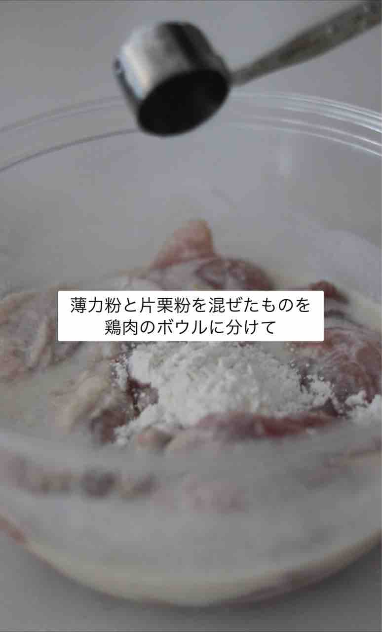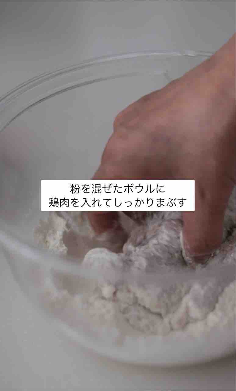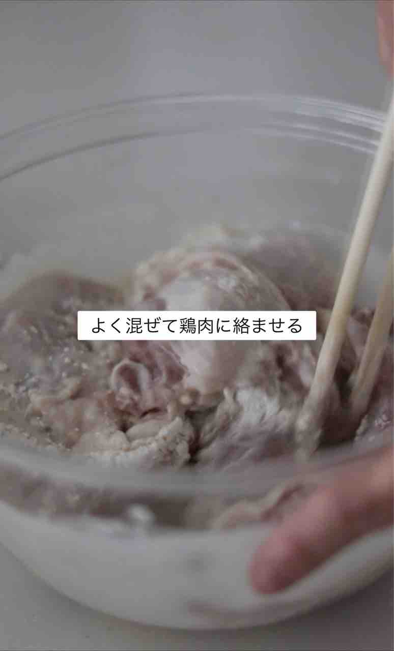 2.ボウルにAを入れて混ぜ、そこに鶏肉を加えてよく混ぜたらそのまましばらく置く。(冷蔵庫で30分以上、一晩でもOK)