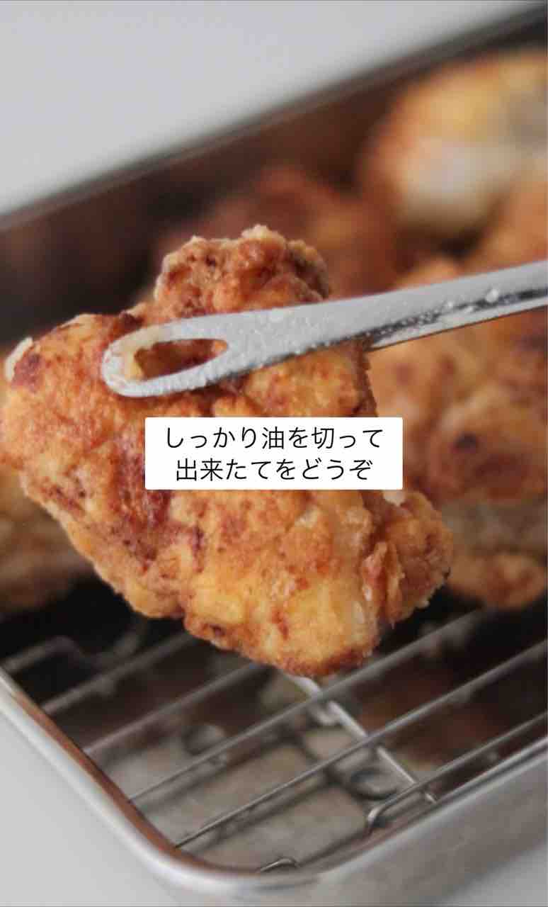 とにかく揚げる時には鶏肉に粉がしっかりまぶされているのがポイント。