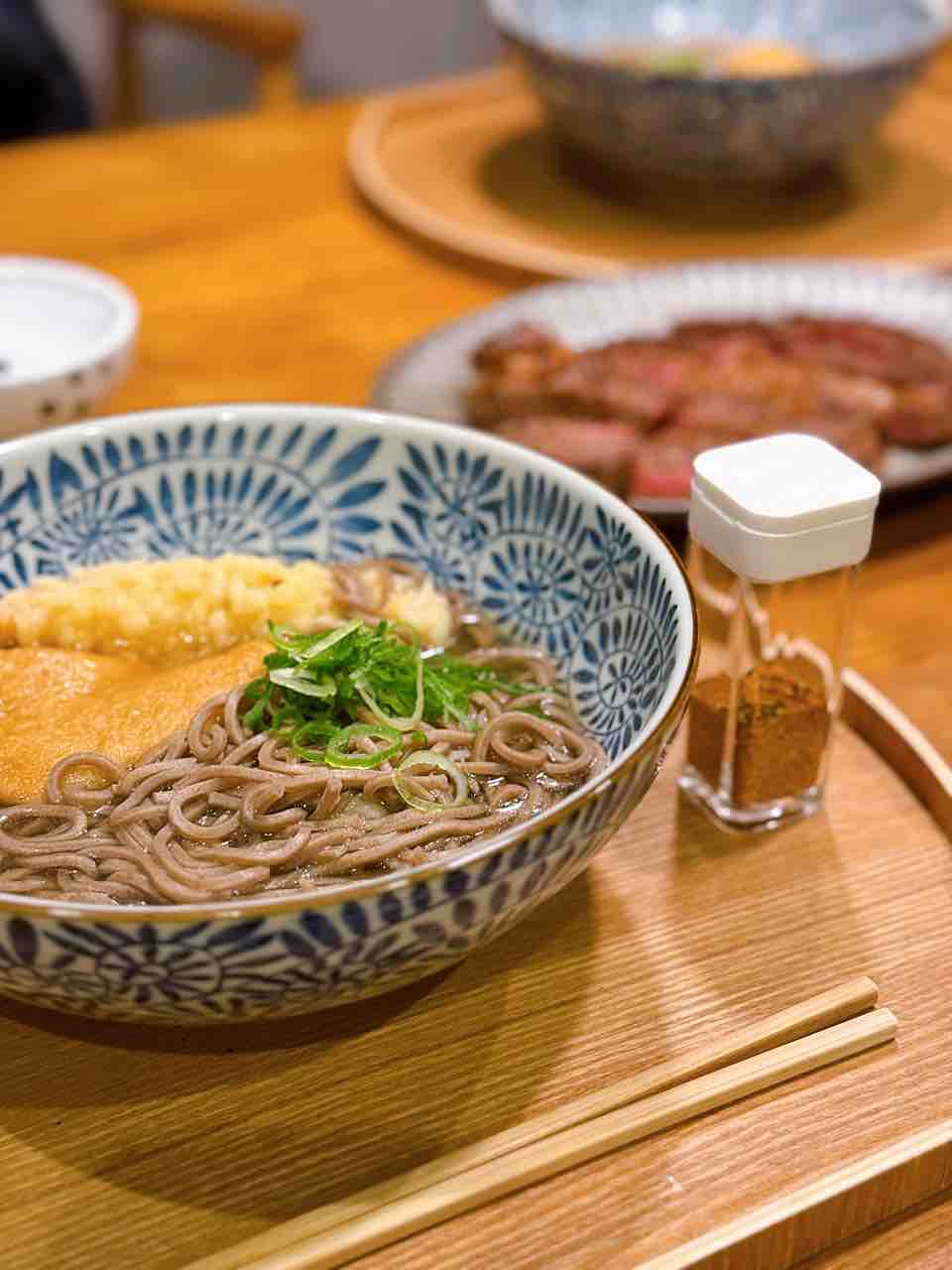 夫と2人だったので、お蕎麦とステーキ肉を1枚焼きました。