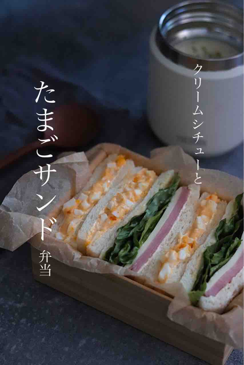 今日の高校生男子弁当は、昨日の夜ご飯のシチューを持って行って欲しくて、それにあわせてサンドイッチ。