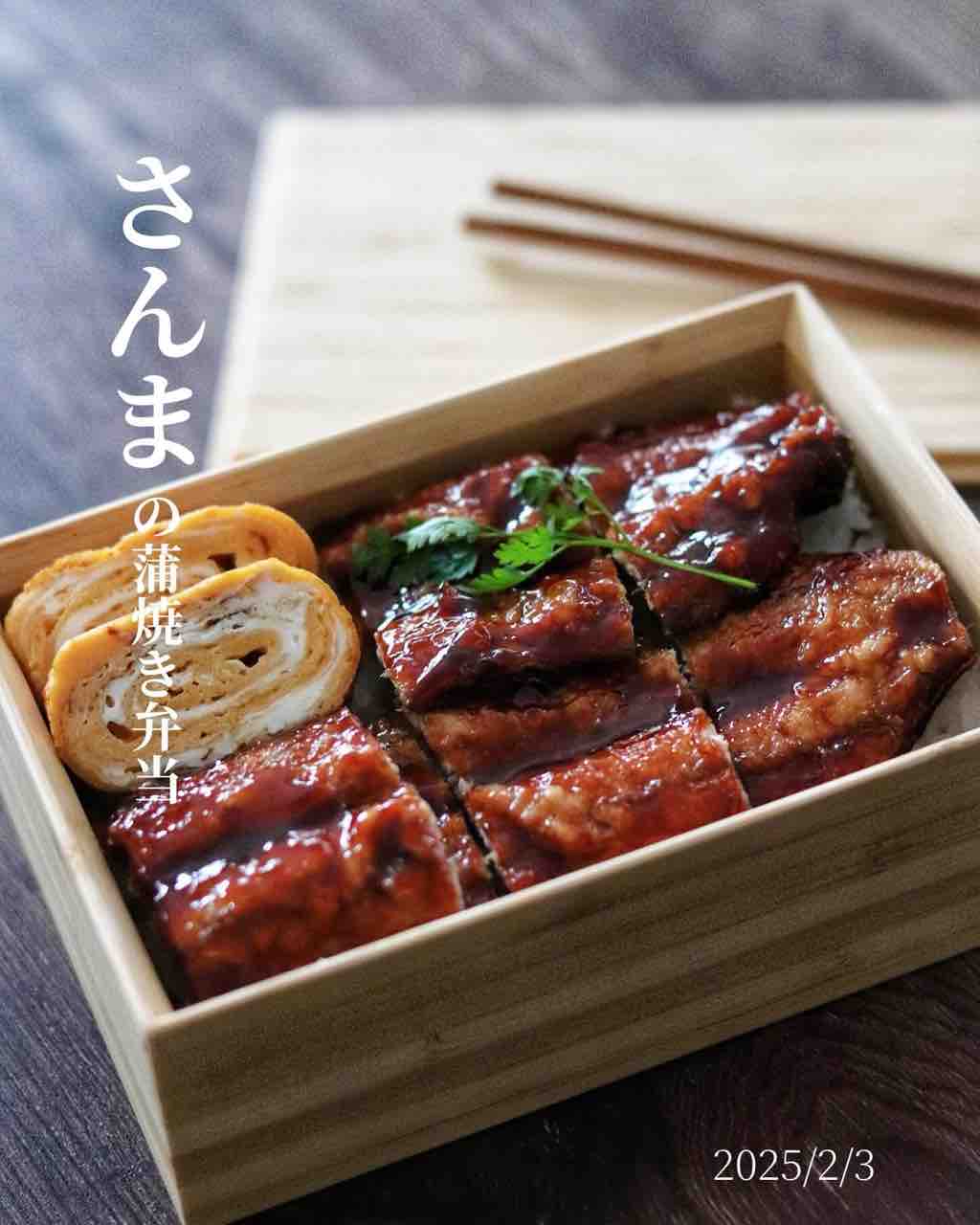 うな重のように盛り付けてるけど、実はさんまの蒲焼き。