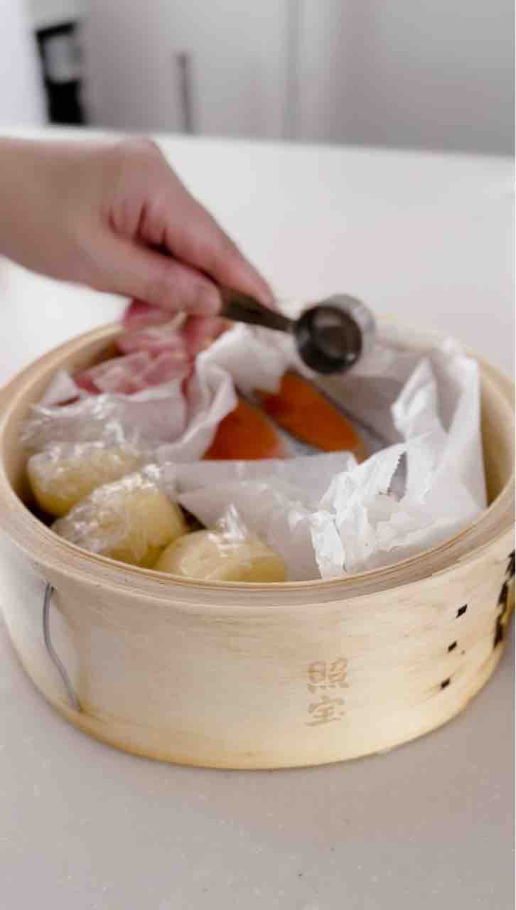 蒸し終わったらクッキングシートから直接保存容器にドボン。
