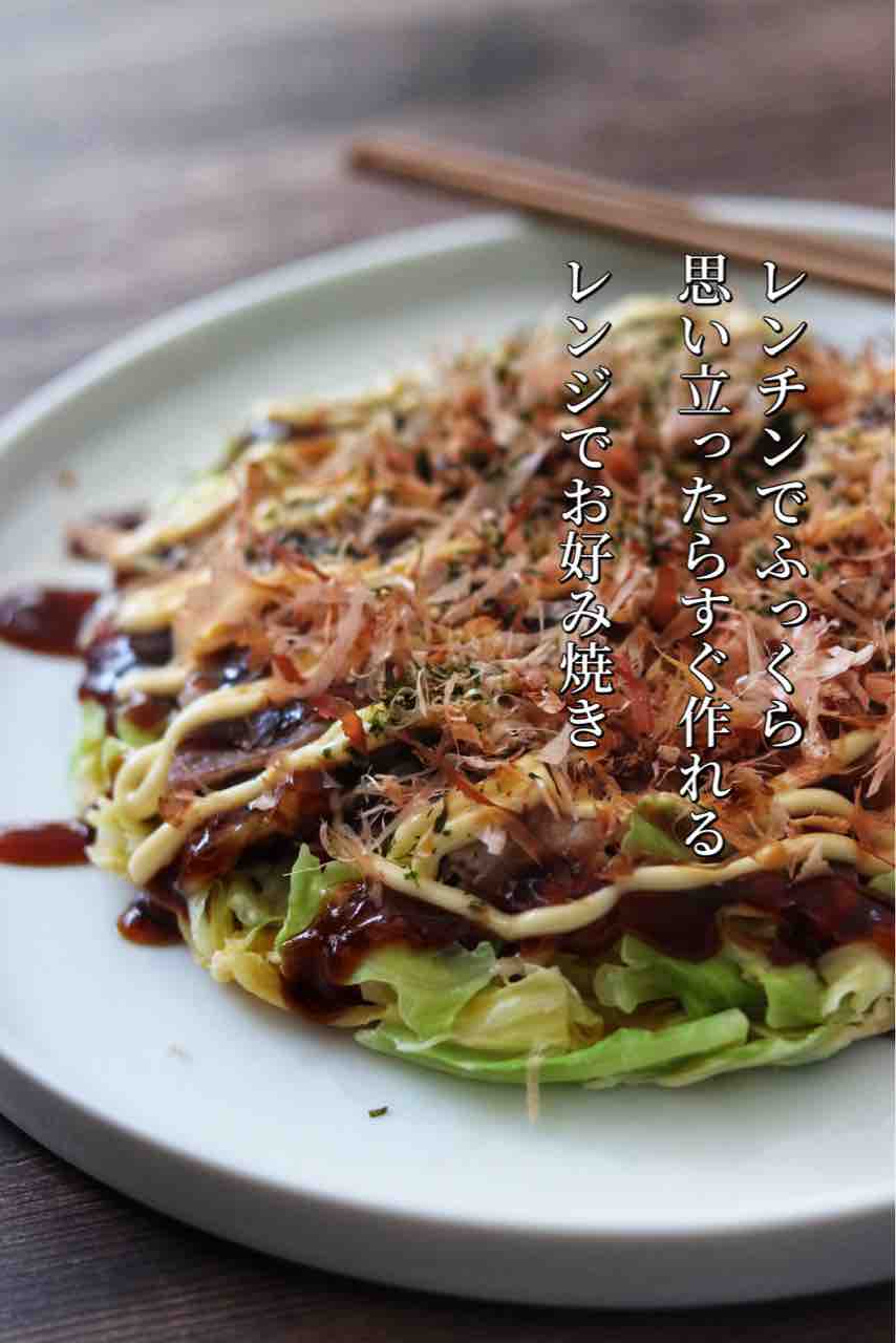 生地を混ぜてチンするだけのお好み焼き、何なら焼くよりふっくら。