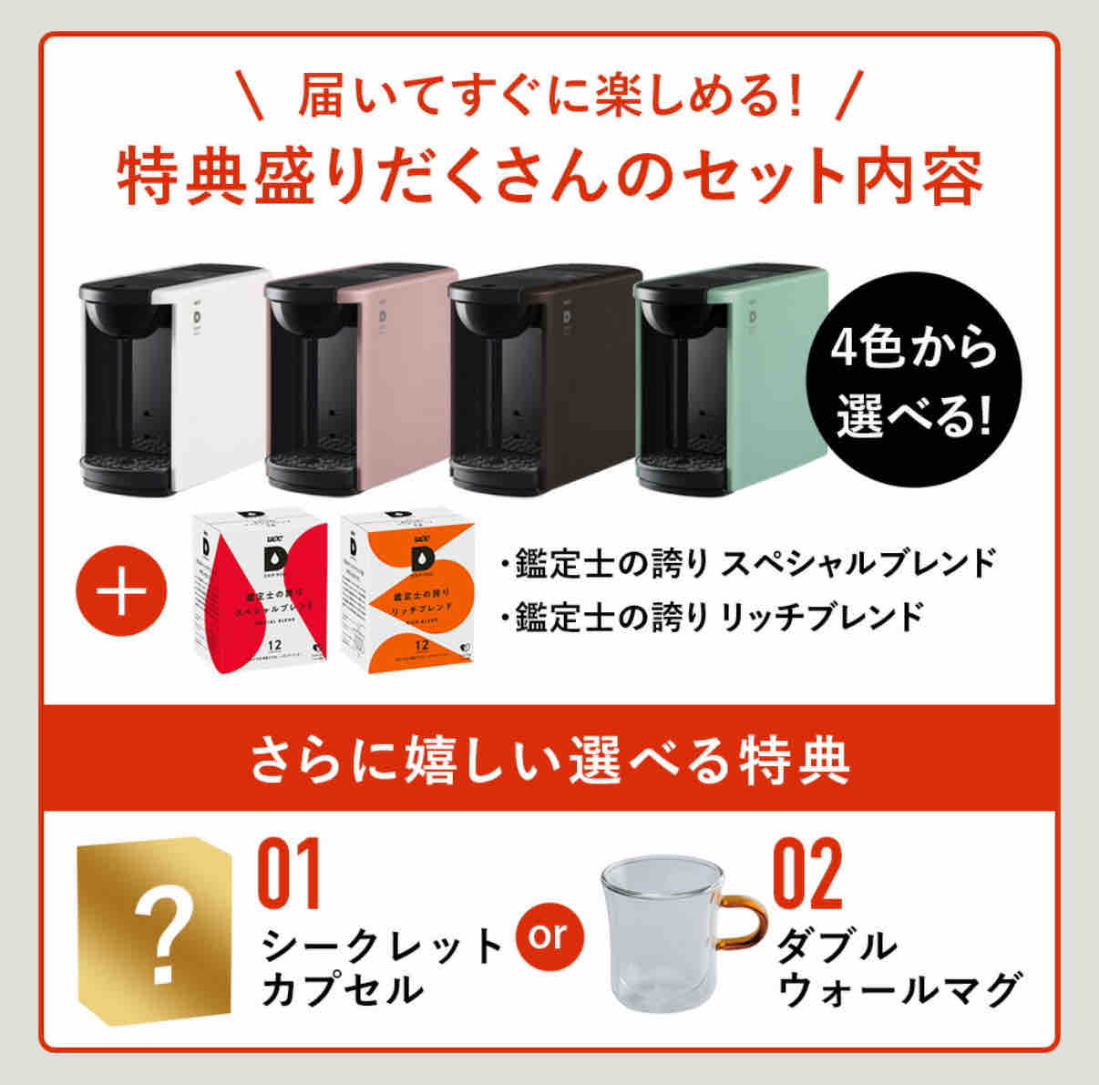 スターターセット(飲み比べ24杯カプセル&選べる特典付き)が期間限定で1万円切ります。