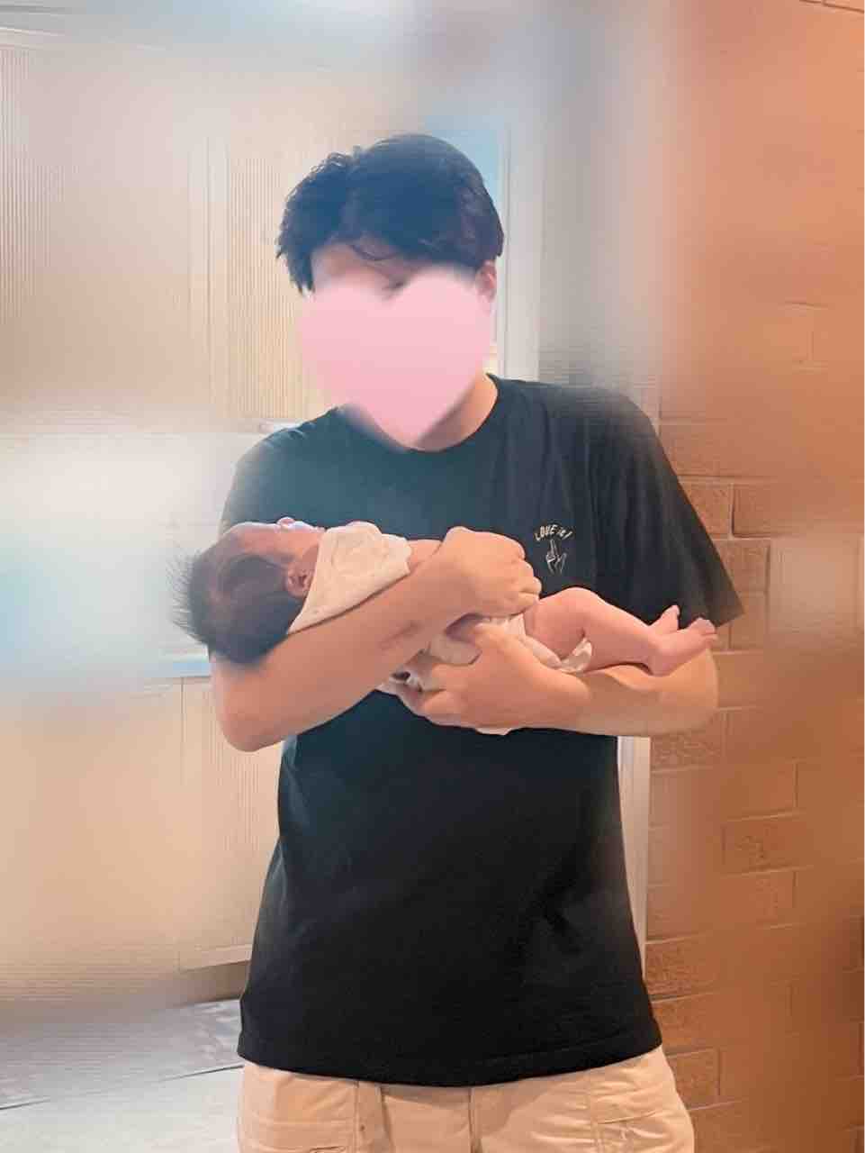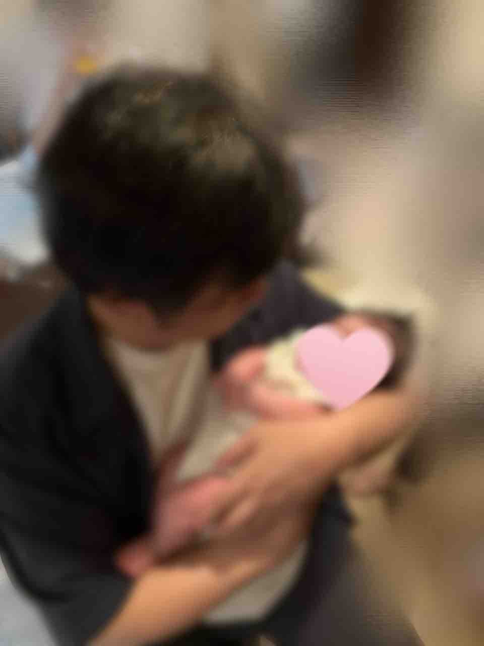次男の時以来17年振り新生児抱っこの夫が怖がりすぎて、みんなで大騒ぎ。