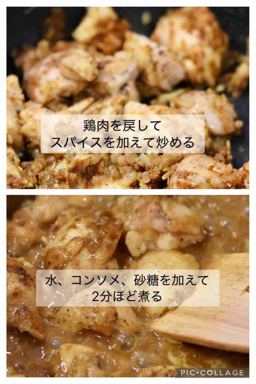 ③②に①の鶏肉と【B】を入れて炒め、全体に絡んで香りが立ったら【C】を入れて2分ほど煮る。