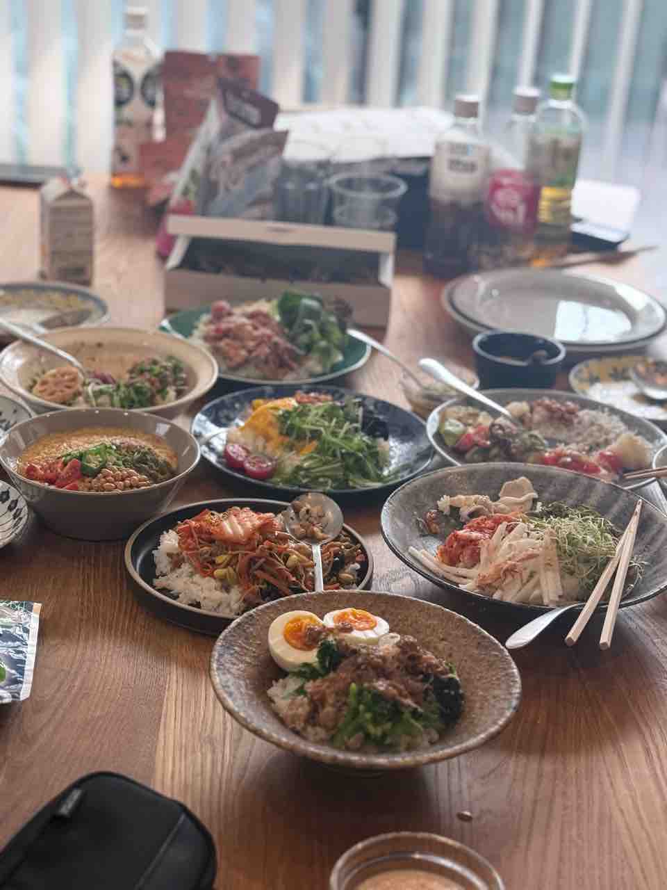 撮影1日目のお昼は、午前中に撮影済みの腸活どんぶりをみんなで味見しつつランチ。