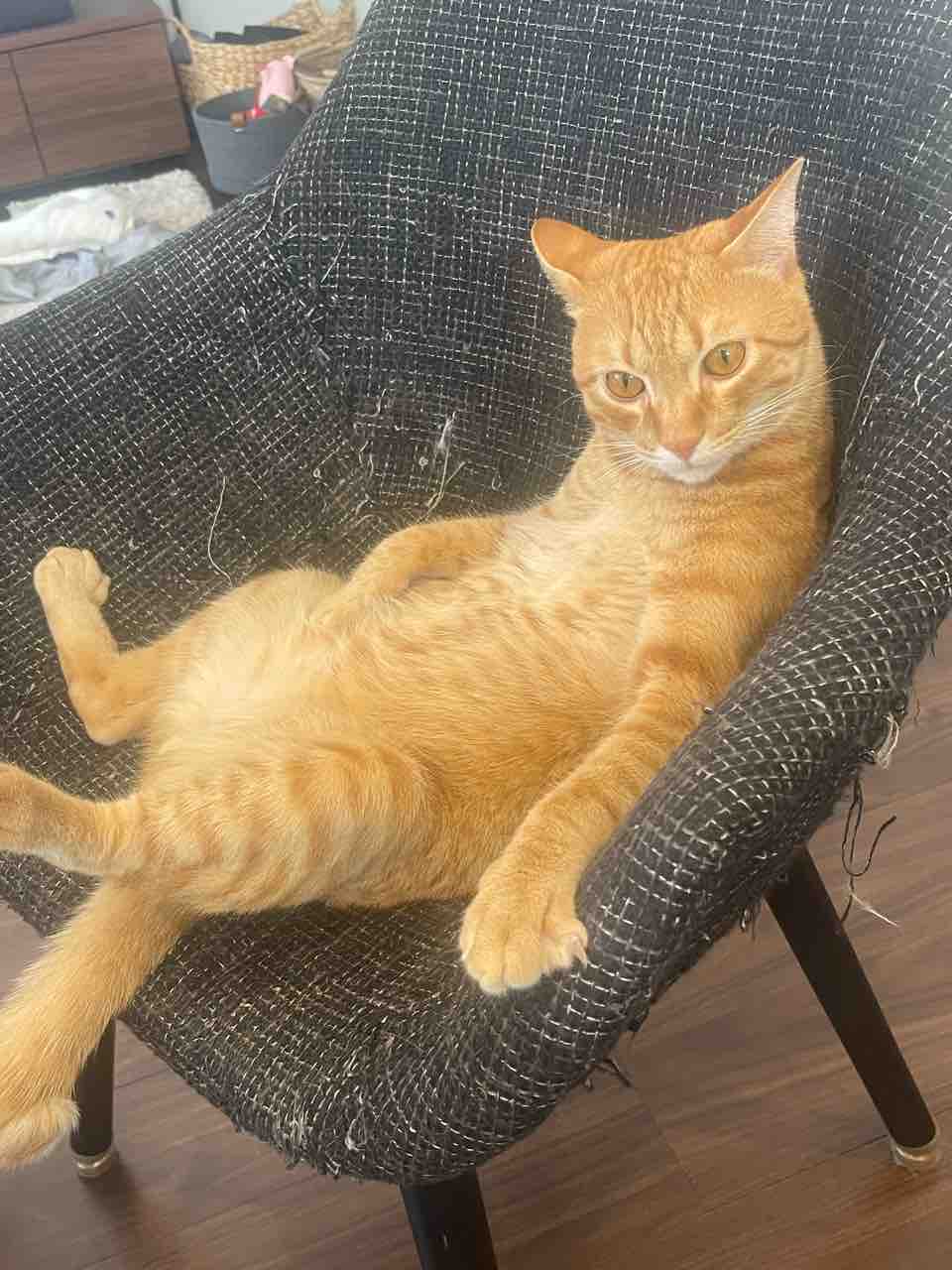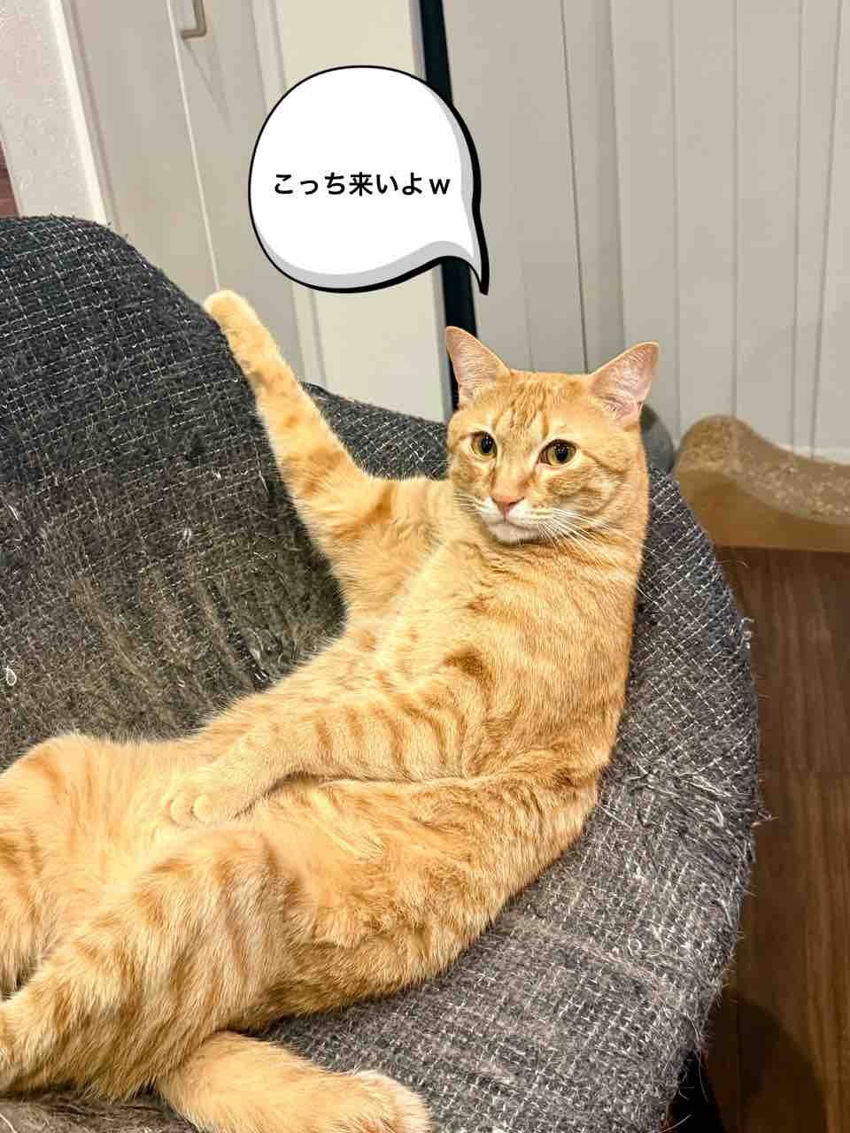 リンちゃんは椅子に座る時、この体勢で人間のように座ります。