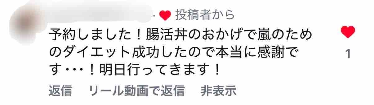 腸活どんぶりとして、日々instagramのストーリーズにあげていた写真を真似して下さっていた方から頂いたコメントです。