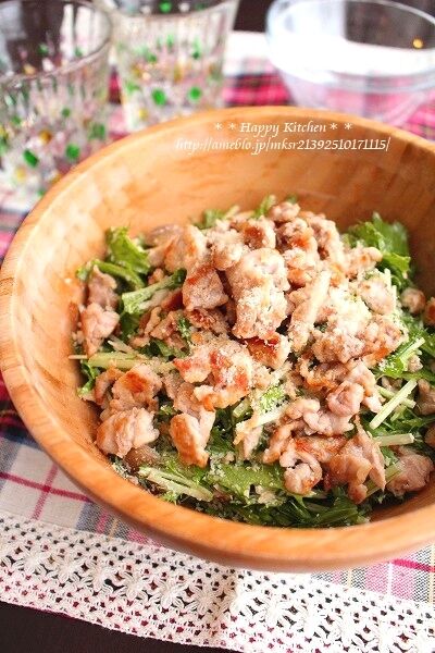 カリカリ豚と水菜のツナマヨポンチーズサラダ*と、夏にオススメレシピ色々公開しました! 水菜としめじと豚肉のサラダです。香ばしい豚肉とシャキシャキの水菜にツナとマヨポンと粉チーズを和えてみました。人参や大根を千切りにしたものを入れても美味しい!簡単だけど主役級のボリュームのあるサラダです。【材料】◎水菜・・・1束◎しめじ・・・1房◎豚こま切 ... 2014/08/02 続きを読む