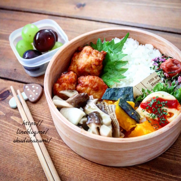 唐揚げとエリンギの昆布茶レモンの弁当【本日のお弁当】 いつもありがとうございます!本日のお弁当*唐揚げ*エリンギの昆布茶レモン*かぼちゃのシナモンバター*イタリアンゆで卵*ぶどうエリンギの昆布茶レモンは、「全部レンジで朝すぐ!弁当」のえのきをエリンギに変えたもの。昆布茶とレモン汁と酒を振ってレンジで2分チン ... 2017/10/18 続きを読む